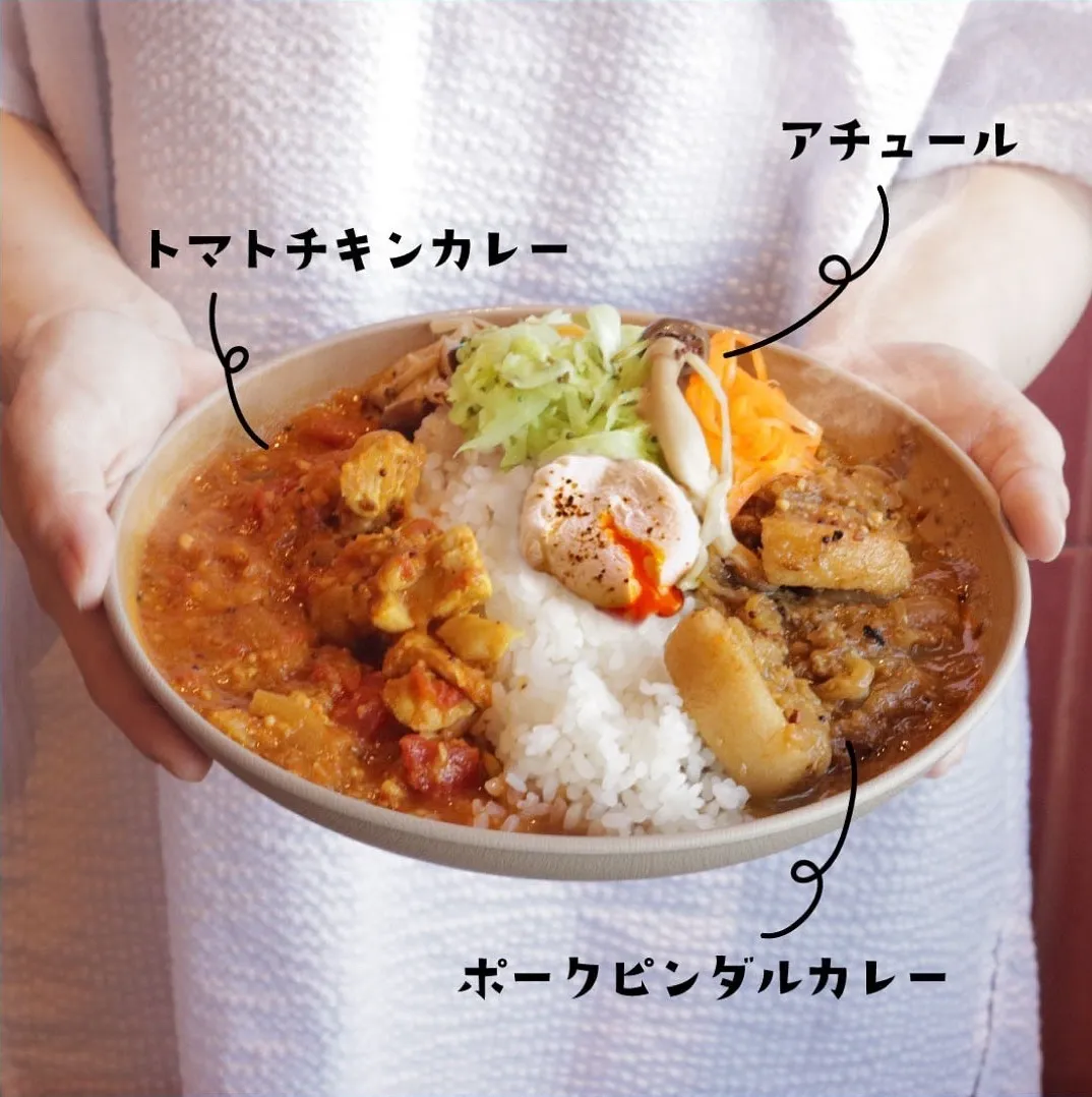 NEIGHBORS葛西の住民シゲが腕をふるう「インドの奴隷」のカレーは、サウナでととのった後にぴったりの一皿。スパイスの香りと旨みが食欲を刺激します。